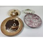 CLARICE CLIFF NEWPORT POTTERY plate of spaniel with bird (28cm), a SPODE Provincial Garden (S3610-A4) plate (25cm) and a Royal Kent Prince Charles and Lady Diana plate (22cm) and a Royal Standard trinket dish (22cm)