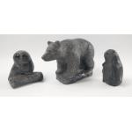Three pieces of WOLF SCULPTURES (Canada) soapstone figurines to include a bear (9cm approx), an owl (7cm approx) and a penguin (7cm approx)