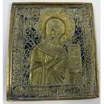 A RUSSIAN ORTHODOX icon antique brass engraved plate Dimensions12cm high x 13.5cm long