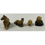 A small collection of whimsies including a monkey, 2 horses and a hippo