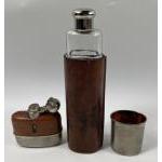 VINTAGE A large spirit flask with white metal LID/DRINKING CUP 24cm x 7cm and also a small kidney shaped spirit flask height 9cm x 7cm
