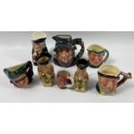 A collection of 8 small TOBY JUGS to include ROYAL DOULTON , SANDLANDSARE WOOD AND SONS etc tallest 10cm
