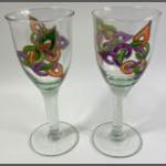 PRETTY pair of hand painted Celtic design wine glasses, just right for an engagement present.