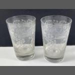 A pair of ANTIQUE etched with flora and fauna designed glass tumblers height 11cm