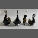 A small collection of three beautiful GLASS SWANS in black with gold highlights, the tallest approx 12cm plus a sitting cat approx 8cm high