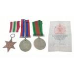 An original WWII medal posting box with original compliment slip from the Under-Secretary of State for Defence containing in individual envelopes The Italy Star, The War Medal, The Defence Medal each with ribbon in excellent condition