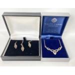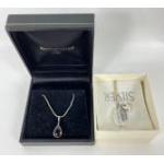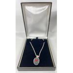 925 Stamped pendant and chain, the pendant is a clear drop with a red rose in centre.[ chain L:58cm]