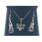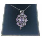 VINTAGE 925 Stamped Silver Pendant with 9 amethyst stones and silver chain [pendant 4.5cm x 2.5cm]