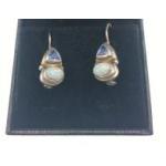 Pair 925 Stamped Silver Earrings set with blue stones and opals