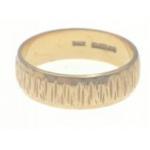 A NICE 14ct yellow gold stamped wedding band 'as new' condition with an outer bark effect design ring size P weight 4.47g approx
