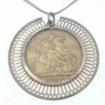 EDWARD Vll 1904 FULL GOLD SOVEREIGN within a 375 stamped mount and 375 stamped chain weight 12.5G combined