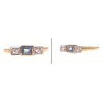 18ct yellow gold two DIAMOND and BLUE SAPPHIRE RING 1.87g gross ring size M
