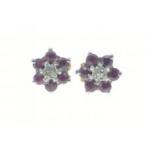 A pair of nice unstamped yellow metal diamond( tested) and garnet stud earrings gross weight 2.38g approx