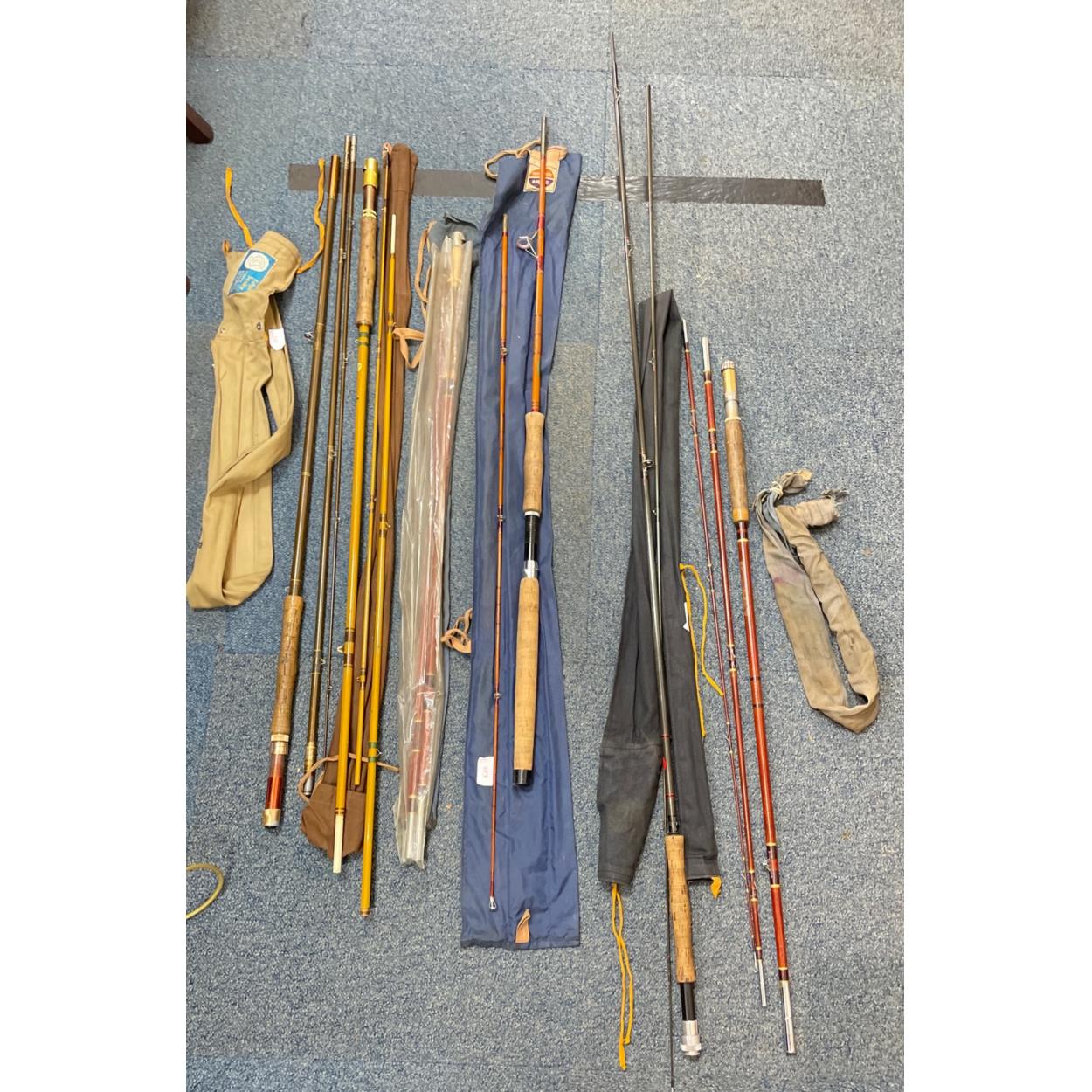 A collection of six fishing rods to include an AUGUR (The Lana), and a GOLDEN LION 9.5' fly plus