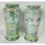 A pair of LUSTREWARE country scene vases stamped to the base HJW 14cm height x 8cm approx
