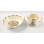 A perfect Christening gift - a vintage ROYAL DOULTON 'BUNNYKINS' twin-handled cup and a bowl