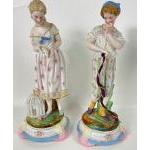 A collection of highly decorated china ornaments to include a lidded jug with stopper 25cm tall (slight damage to a very few petals), a Von Schierholz porcelain faux urn with 2 cherubs (16cm high) ( 1 cherub missing an arm, and damage to 3 leaves), a bonbon dish with a cherub (18cm high) whose arm has been re-attached and damage repaired to the handle, a lady (hand missing) and gentleman in 18th century dress (16cm tall),