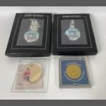 2 boxed EDDIE STOBART pocket watches and 2 commemorative coins. 2nd June 1953 Coronation and Queen Elizabeth II 90th Birthday.