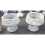 Pair of stone-effect ornate 'Tulip form' garden planters on hexagonal bases - dimensions for each are 45cm height x 45cm diameter approx