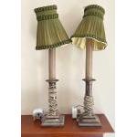 A pair of electrified c1920's SHEFFIELD SILVER HALLMARKED candle effect candle stick table lamps