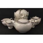 A WEDGWOOD AMHERST tea service for six comprising 6 cups, 6 saucers, 6 plates, 1 lidded sugar bowl, 1 milk jug and 1 teapot, unused