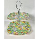 A PRETTY VINTAGE HANDPAINTED Anemone pattern ROYAL WINTON Grimwades two tier cake plate with gold trim - dimensions 22cm diameter(large base plate) x 19.5cm diameter(top plate)