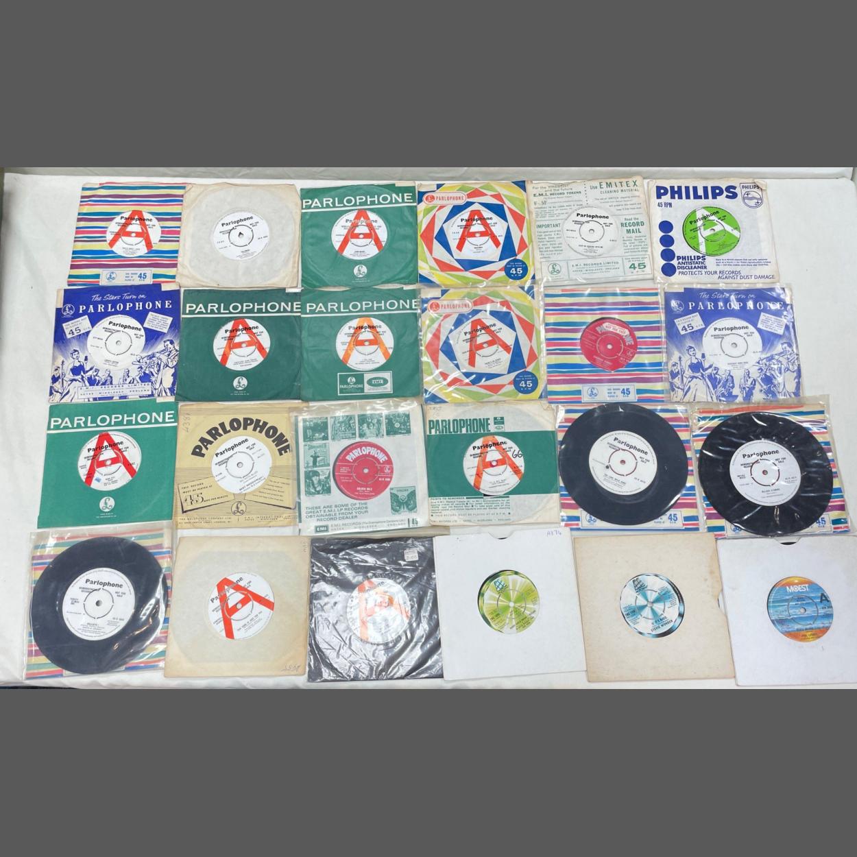 A great collection of 45RPM demo singles . Over 20 discs from PARLOPHONE by such artists as Cliff Bennett, Judd Proctor, Mogambo, The Fentones, The Federals, also three Motown discs