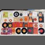 Lot of over 100 45rpm vinyl records from various recording studios including HAPPY TIGER, HARP, HARVEST, H.M.V., HOWARD (WARNER BROS LTD.), IMMEDIATE, IMPERIAL, INTERNATIONAL TALENT INC., ISLAND, JAY BOY, JET, JIN RECORDS, JIVE, KAPP, KALEIDOSCOPE RECORDS LTD., KUDU, LIBERTY, LIFESONG, MAM (DECCA), MAGNET, MAKING WAVES, MCA, MERCURY, METRONOME, MOJO, MGM, MM (MAJOR MINOR), MOROCCO, MOUNTAIN, OLD GOLD, and ORIOLE and recording artists from the 1960s, 70s and 80s including Sonny Webb & The Cascades, Bill Haley & The Comets, Toto, Sensational Alex Harvey Band, The Coyote Sisters, Jimmy Jones, Roni Griffith, Dean Friedman and Esther Philips among many others.
