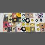 Lot of over 100 45rpm vinyl records from various recording studios including 2nd INNINGS, STARLIGHT, STATE, STATESIDE, STAX, STIFF, SUN, TAM TAM, TEN, TK, TOP and BOTTOM, TOP RANK, UK, UNITED ARTISTS, UNI, VALIANT, VEEP, VIRGIN, VISTA, VOCALION, VOCALION POP, VOGUE POP, WARNER BROTHERS, WEA, and XL RECORDINGS with recording artists from the 1960s, 70s and 80s includingThe Shirelles, John Leyton, Andy Stewart, Booker T. & The M.G.'s, Sonny & Cher, The Flying Pickets and Night In Motion among many others.