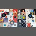 Lot of over 110 45rpm vinyl records from various recording studios including RAK, RCA, RCA-VICTOR, REGAL, RELEASE, REM, REMINGTON, REPRISE, REVIVAL, REX, RITZ, ROCKFIELD, ROJAC, and RSO with recording artists from the 1960s, 70s and 80s including Racey, Sam Cooke, Waylon Jennings with Willie Nelson, Floyd Robinson, Jim Reeves, Tony Travis, Roy Hamilton, Grapefruit, Frank Sinatra and The Bee Gees among many others.