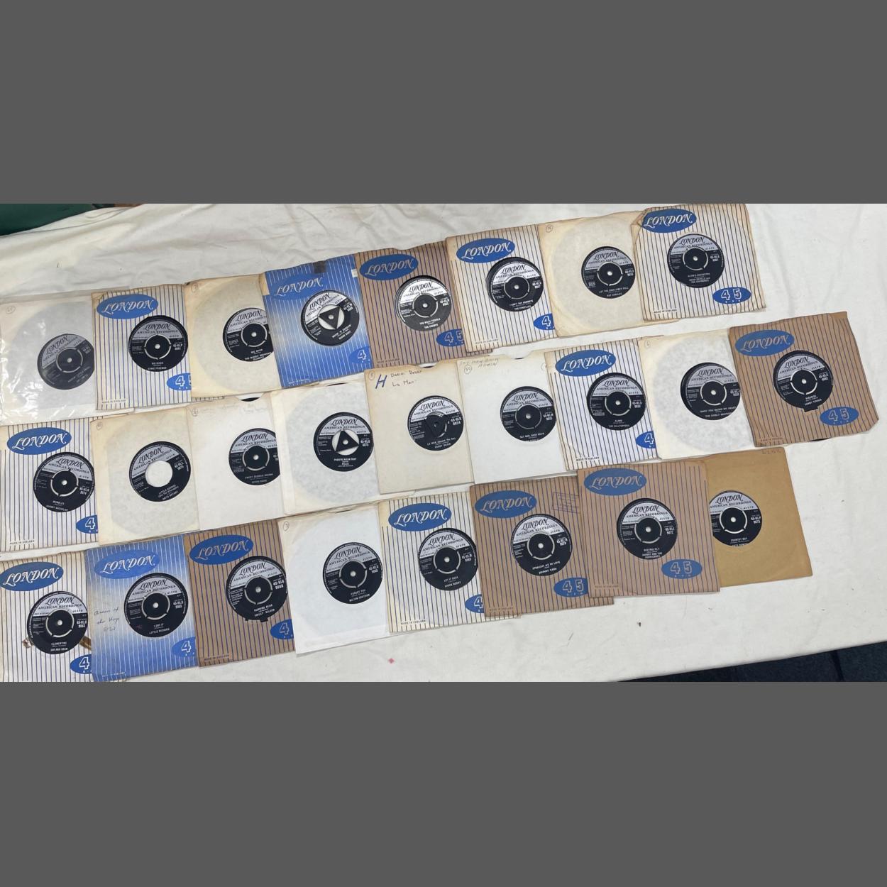 The Sherrys, Bobby Darin, Slim Whitman, Rick Nelson among many others- an interesting selection of 25 LONDON / LONDON AMERICAN RECORDINGS including L.A.R. ATLANTIC and L.A.R. DOT 45rpm vinyl records from the 1960s.