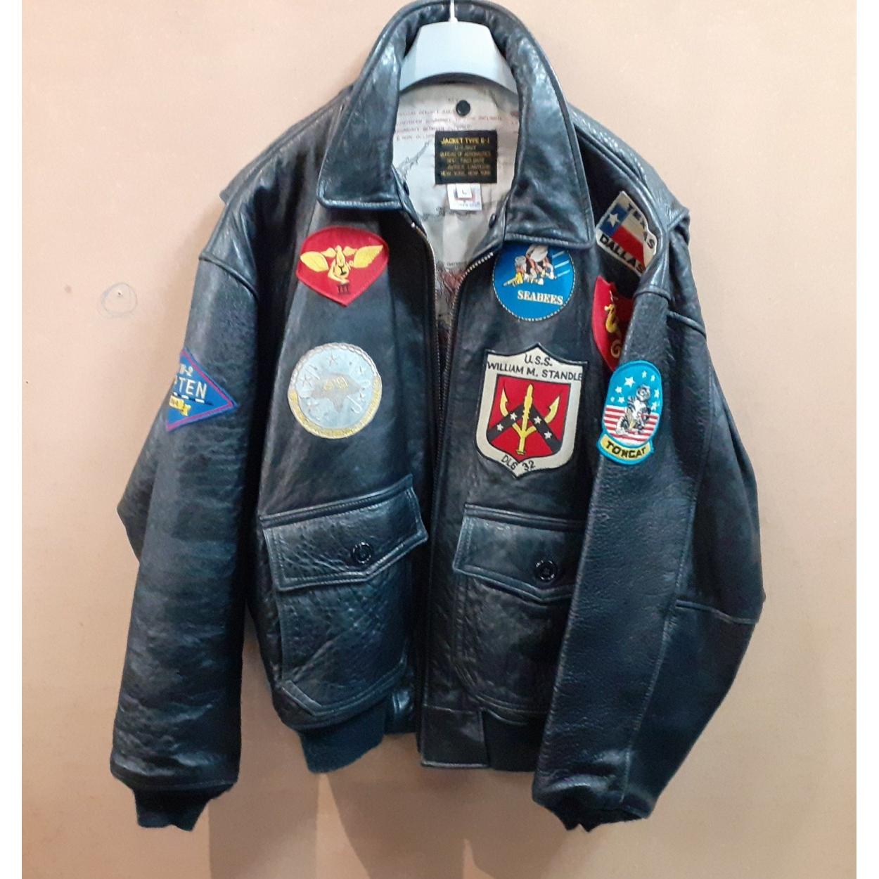 A US Navy aviation leather jacket type G1with 8 patches to sleeves and front and large rear patch. Size L. Lovely American made jacket.