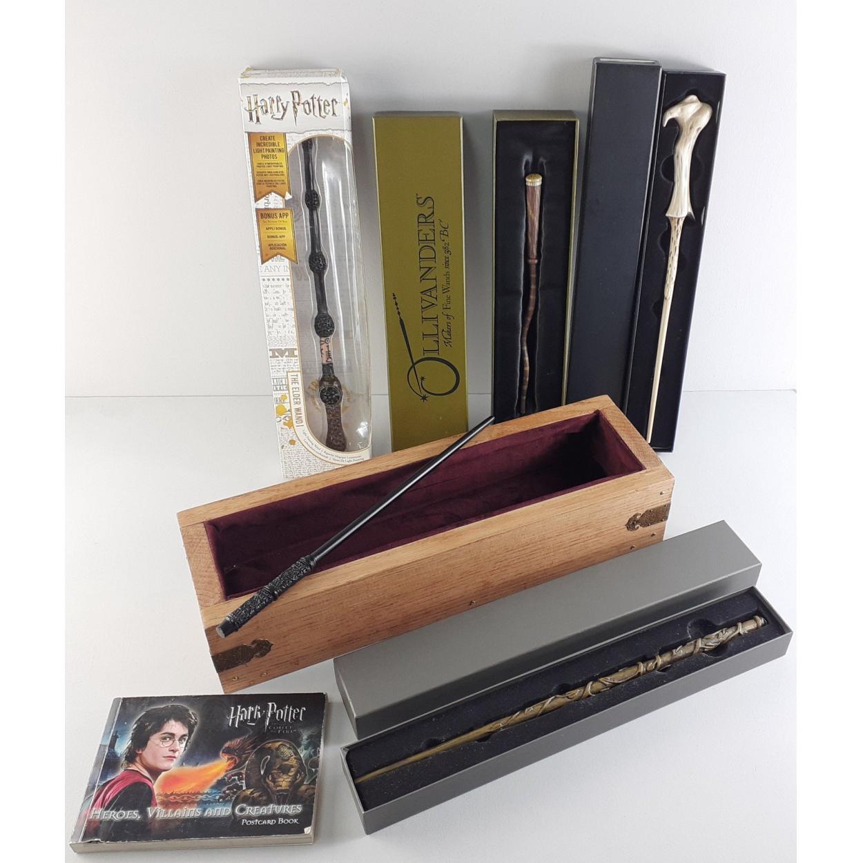 HARRY POTTER. A collection of five wands. The Elder Wand, Voldemort, Hermione Granger, Willow 5 Olivander Wands. Four boxed, one loose.