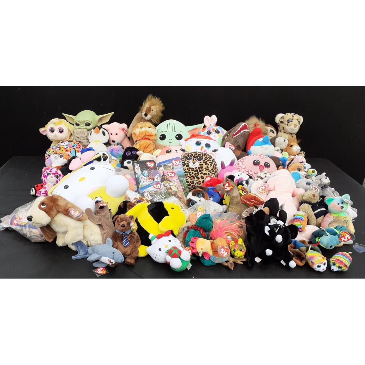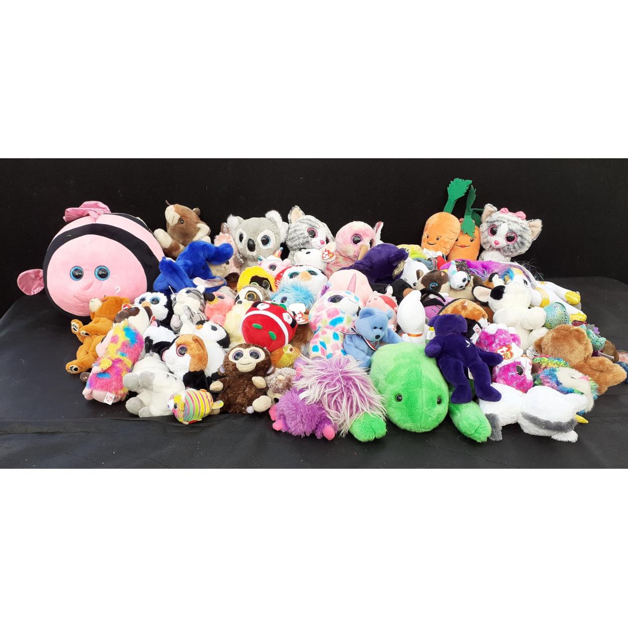 Loads of beanies to include a koala, ducks, penguins, dogs in 2 tubs.