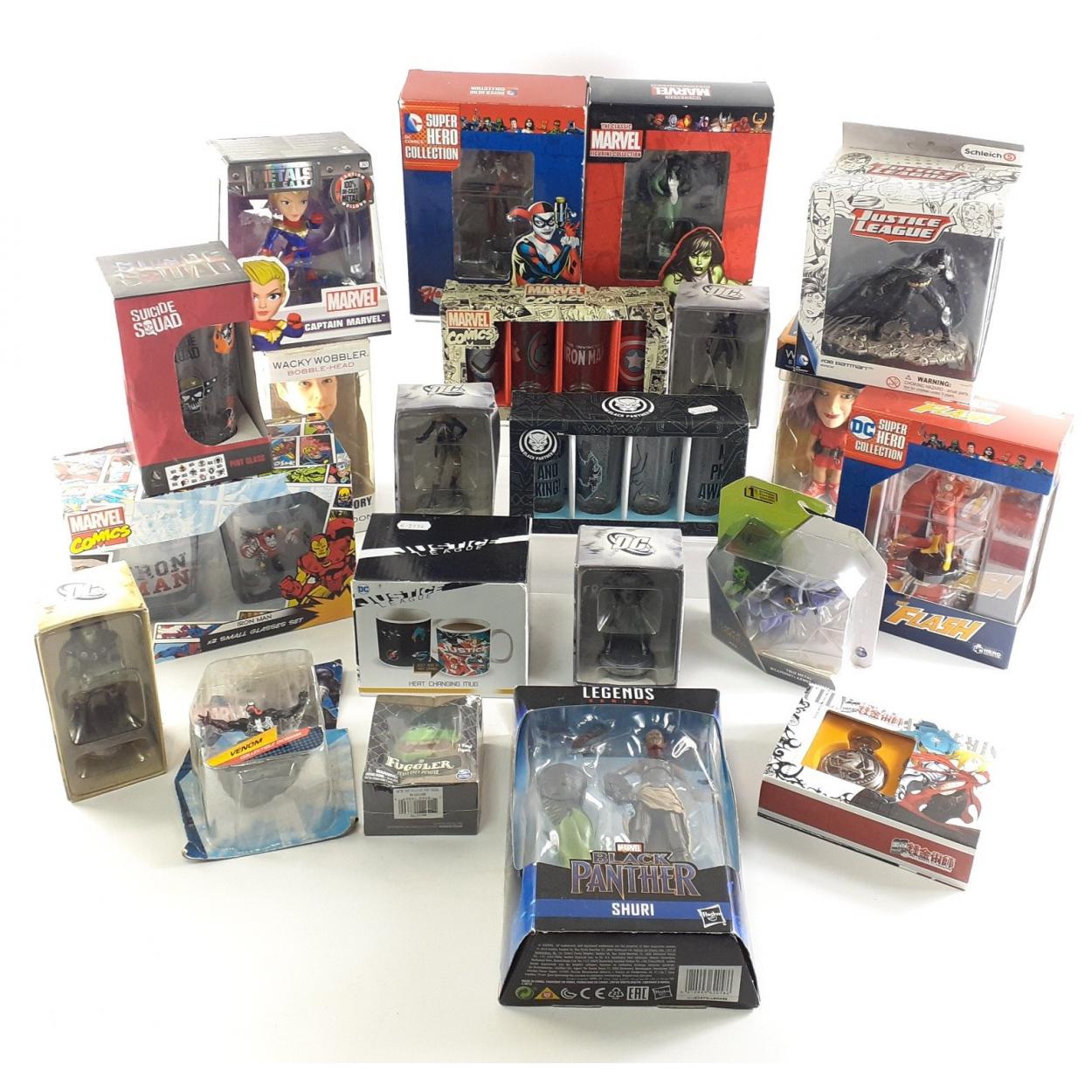 MARVEL and DC box figures, HULK, IRON MAN Glasses, The Flash, Justice League and much else.