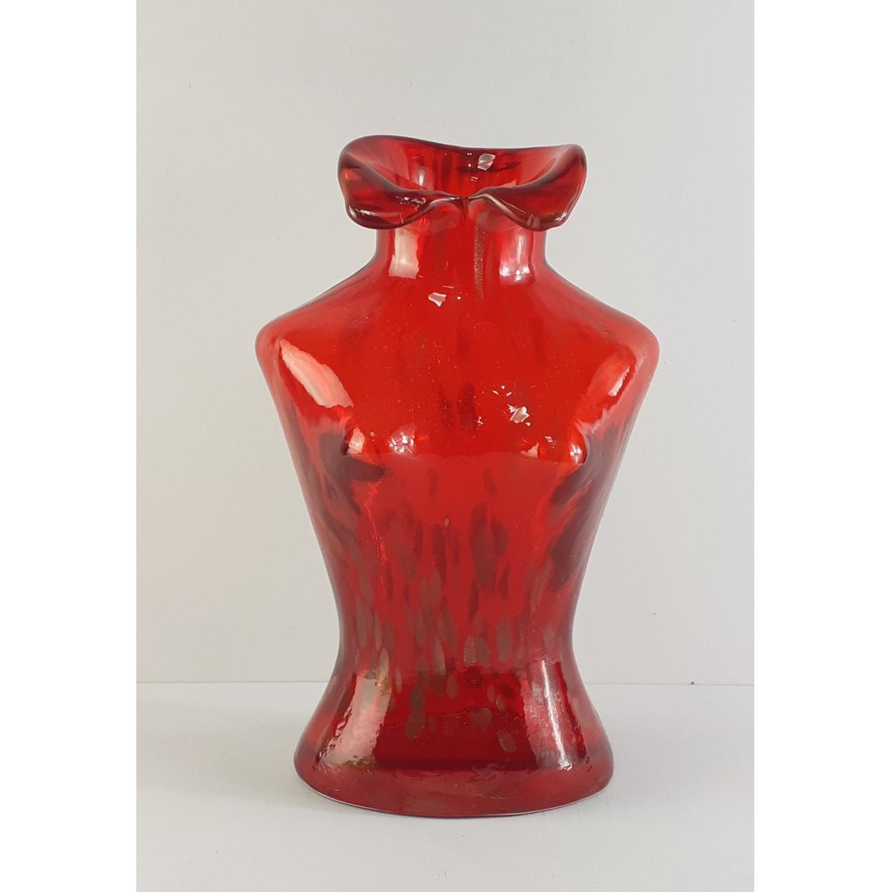 A super red glass vase in the shape of a female form, stands 30cm approx