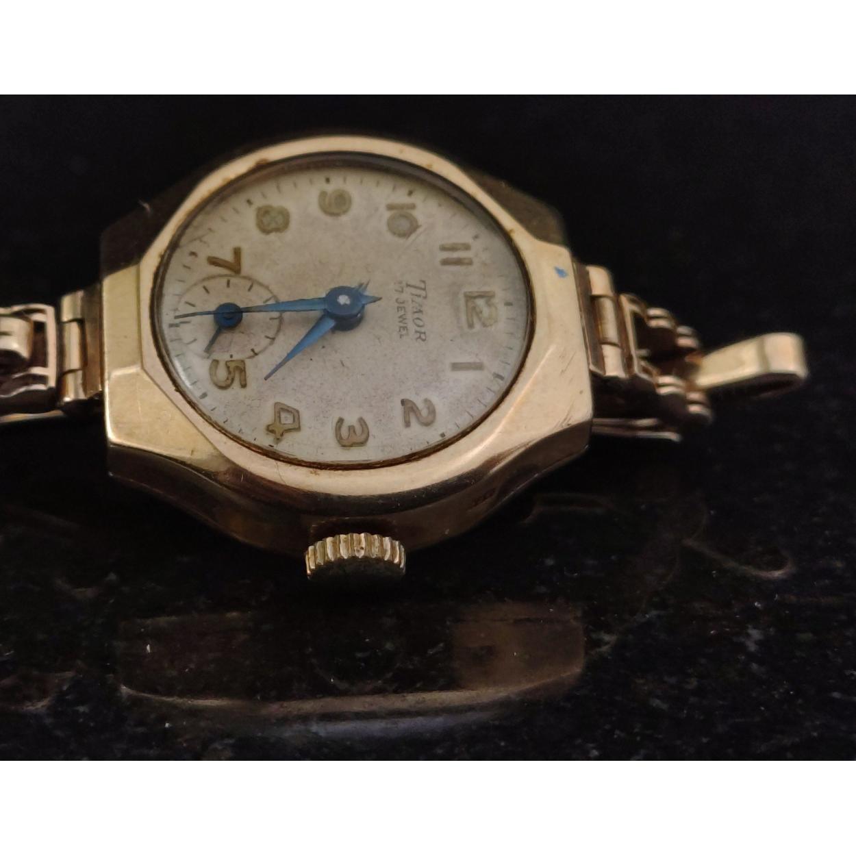 A vintage boxed ladies TIMOR wristwatch stamped 375 to the case and the expanding bracelet is also stamped 375 - not in working condition - gross weight 16.94g approx