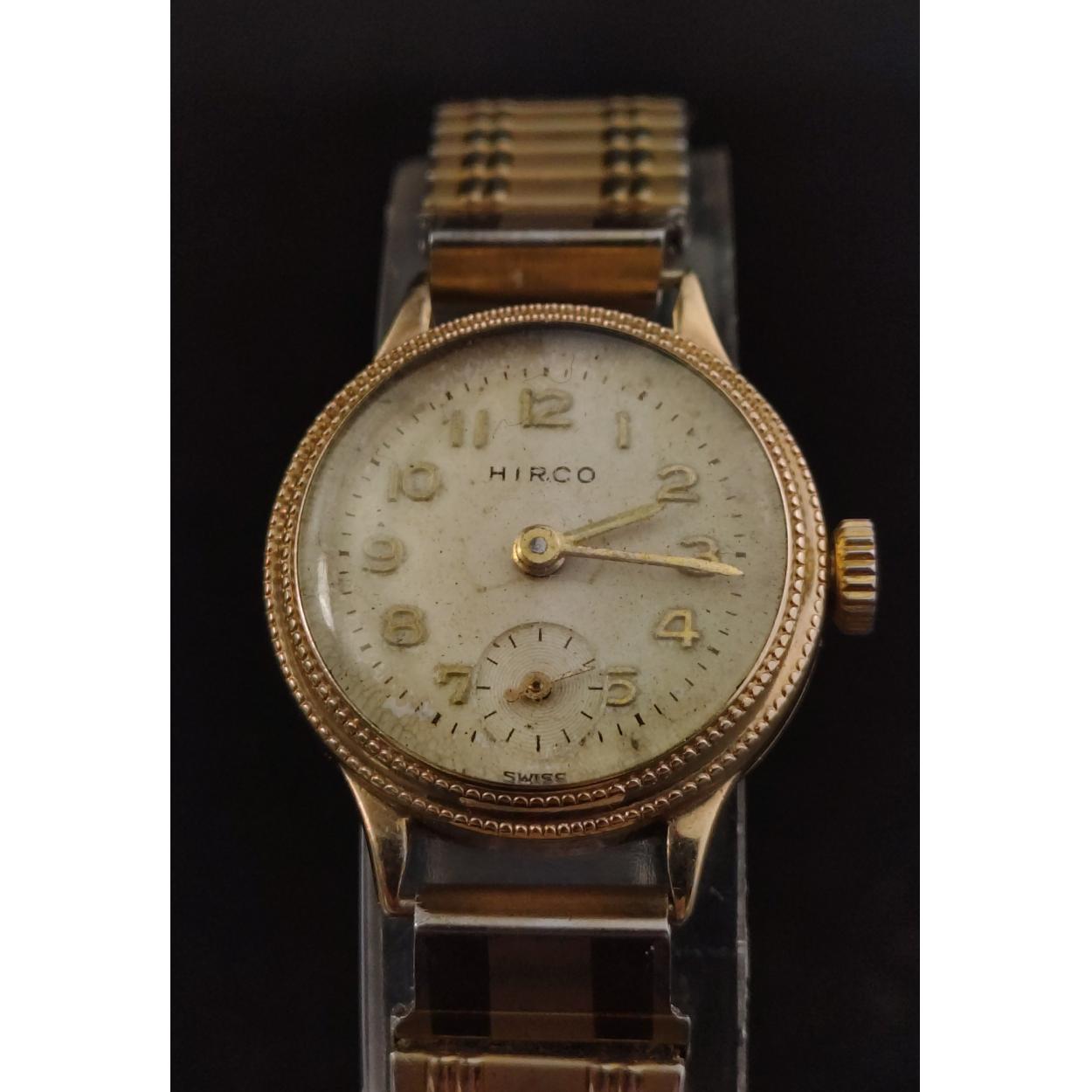 An unboxed 375 stamped ladies wristwatch with expanding yellow metal bracelet - brand HIRCO - not in working condition - gross weight 25.52g approx