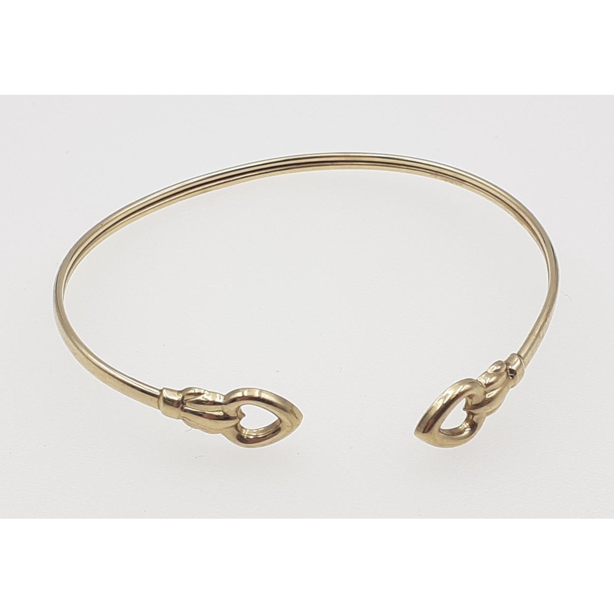 A fully hallmarked 9ct gold bangle with heart finials. Gross weight 2.75g approx
