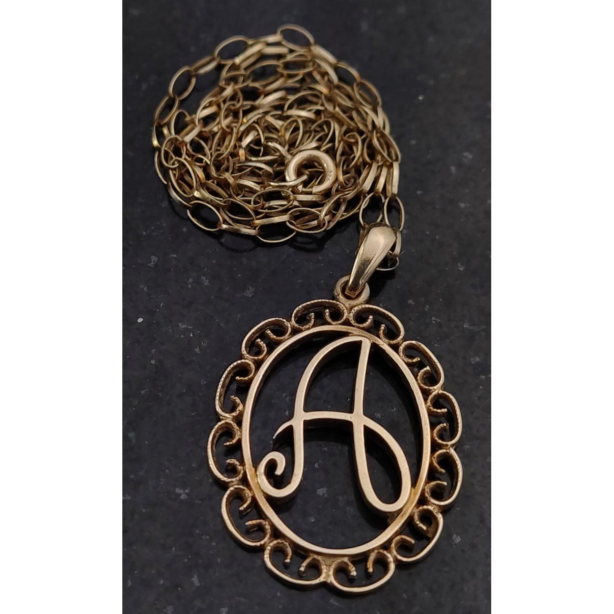 A fully hallmarked 375 / 9ct pendant with initial A design on 375 chain. 52cm chain, 5.2g gross