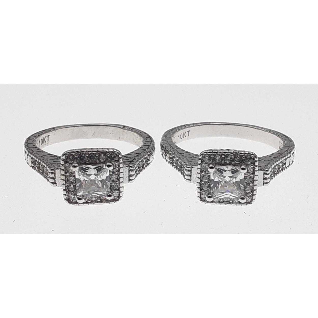 Two attractive rings with clear stones both stamped 10kt to shank, otherwise unmarked. Gross weight 7.6g approx