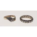 Two gold rings one with full 9ct hallmarks size N 2.5g approx. The other an eternity ring set with clear stones also size N gross weight 2.9g . Total gross weight 5.4g approx
