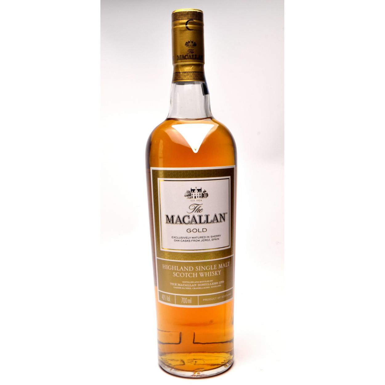 MACALLAN GOLD Malt Whisky 70cl within its white presentation carton - seal intact - good condition - All came from a passionate whisky collector's collection! The item is sold as described and we do not accept liability for the state of the closure or the taste of the contents.