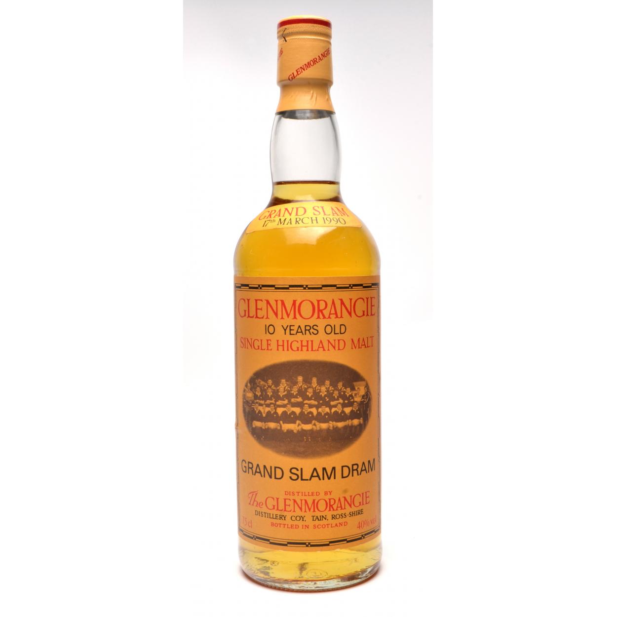GLENMORANGIE 10 years old GRAND SLAM DRAM 75cl 17th March 1990 bottle of Single Highland Malt whisky - Highly Sought After! Additional info: these bottles were put together to celebrate the legendary Grand Slam success by Scotland's national rugby team. - the last time Scotland won the 5 Nations. The item is sold as described and we do not accept liability for the state of the closure or the taste of the contents.
