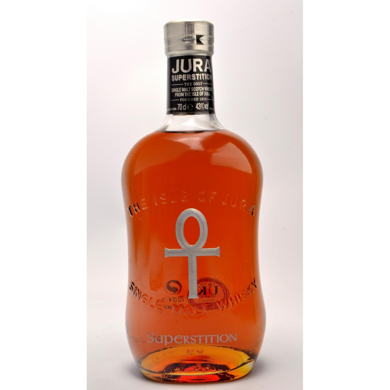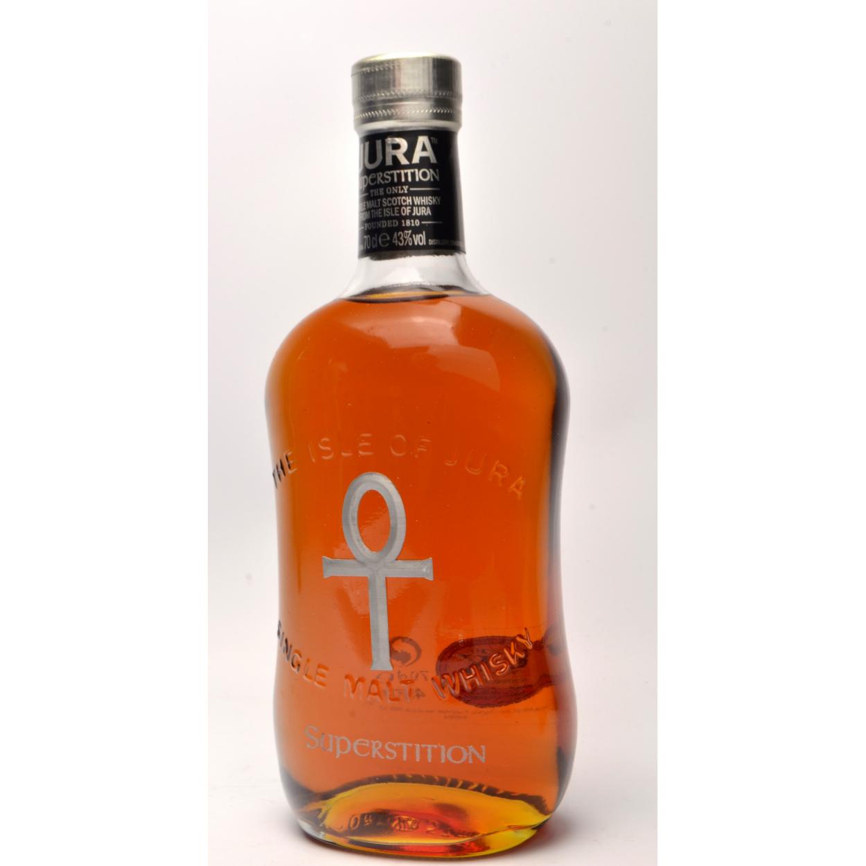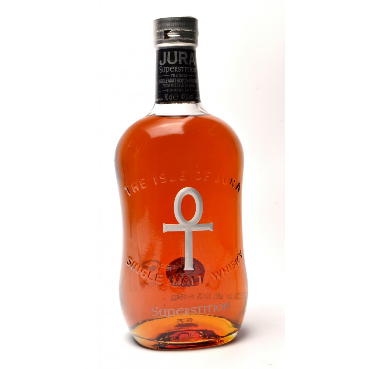 THE ISLE OF JURA 'SUPERSTITION' 70cl within presentation box (not original to the bottle) - seal intact - good condition - All came from a passionate whisky collector's collection! The item is sold as described and we do not accept liability for the state of the closure or the taste of the contents.
