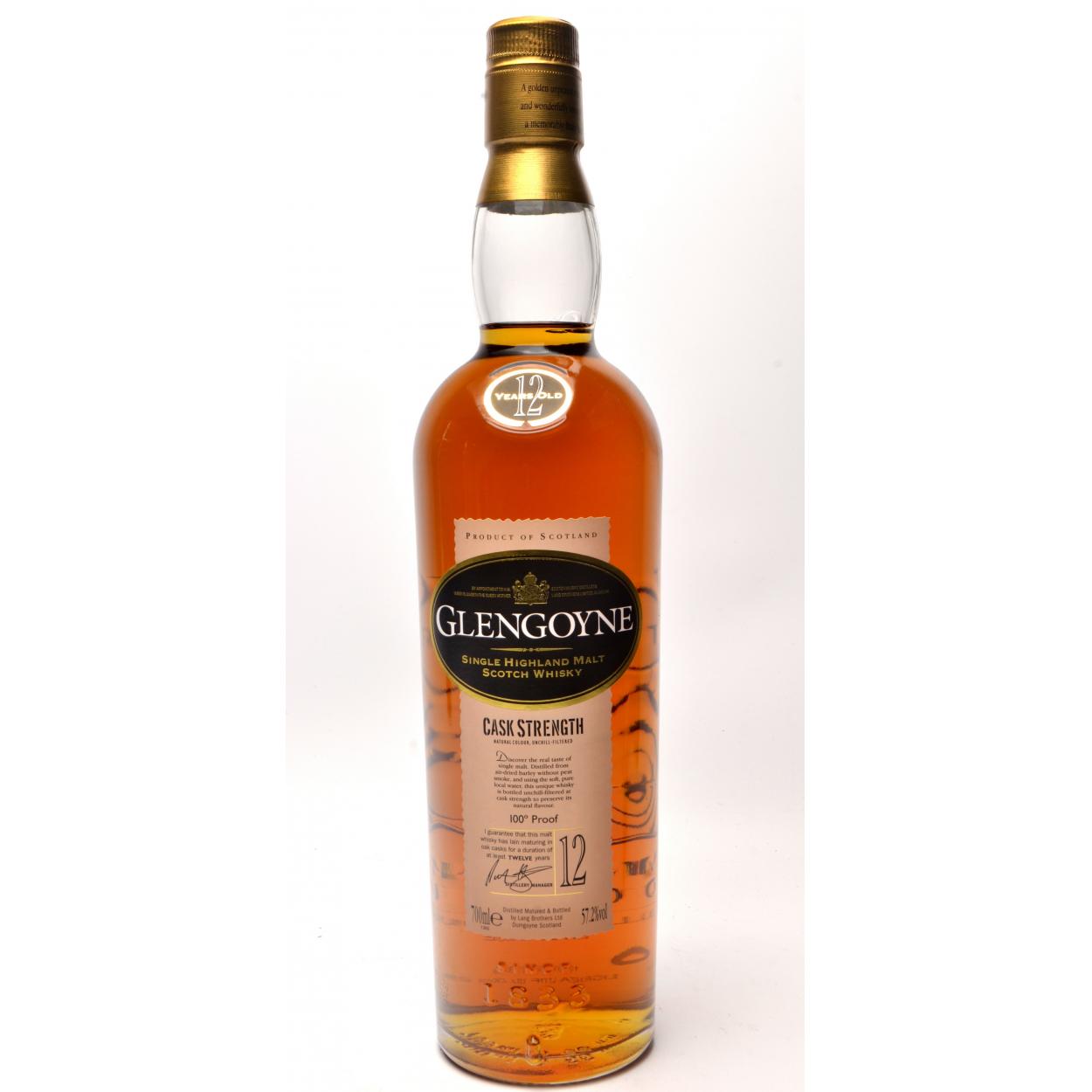 GLENGOYNE 12 Year Old CASK STRENGTH 100 PROOF Malt Whisky 700ml in its black liveried presentation box - seal intact - good condition - All came from a passionate whisky collector's collection! The item is sold as described and we do not accept liability for the state of the closure or the taste of the contents.