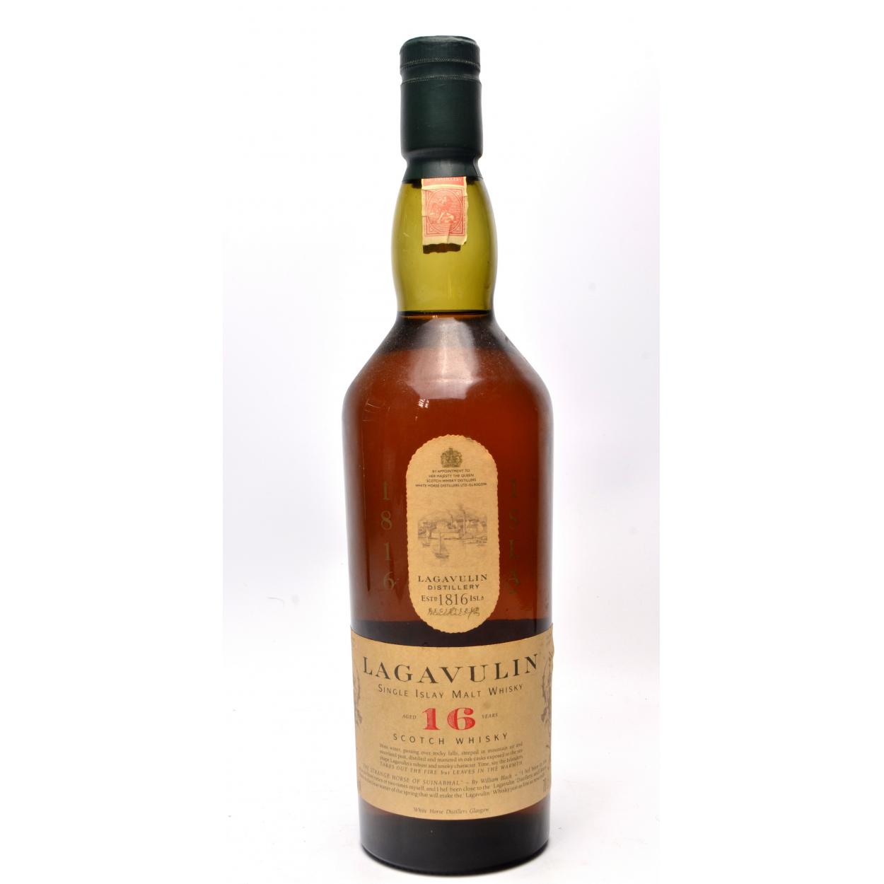 A 70cl bottle of LAGAVULIN Single Islay Malt aged 16 years. The item is sold as described and we do not accept liability for the state of the closure or the taste of the contents.