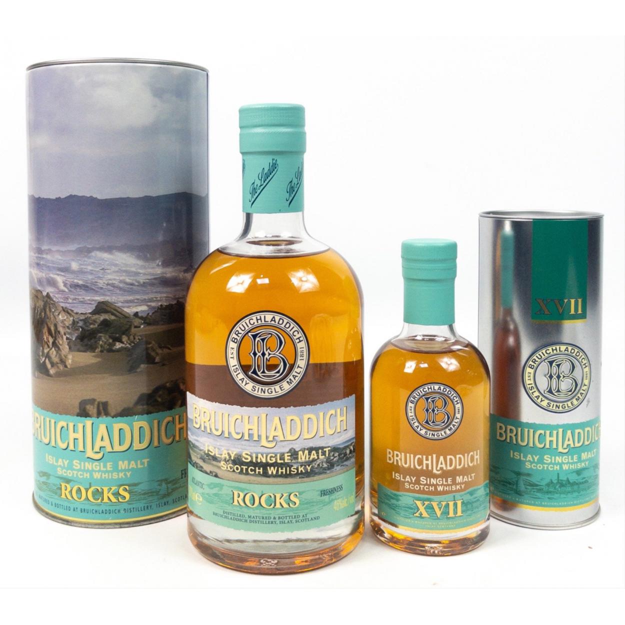 Two bottles of BRUICHLADDICH Islay Single Malt a 700ml of Rocks and a 200 ml of XV11 both in presentation tins. The item is sold as described and we do not accept liability for the state of the closure or the taste of the contents.