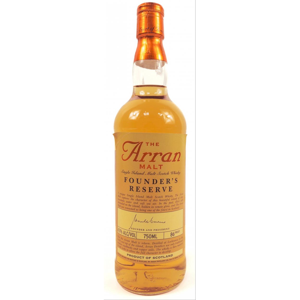 THE ARRAN MALT - FOUNDER'S RESERVE, 750ml, 86 proof, distilled in 1995. The item is sold as described and we do not accept liability for the state of the closure or the taste of the contents.