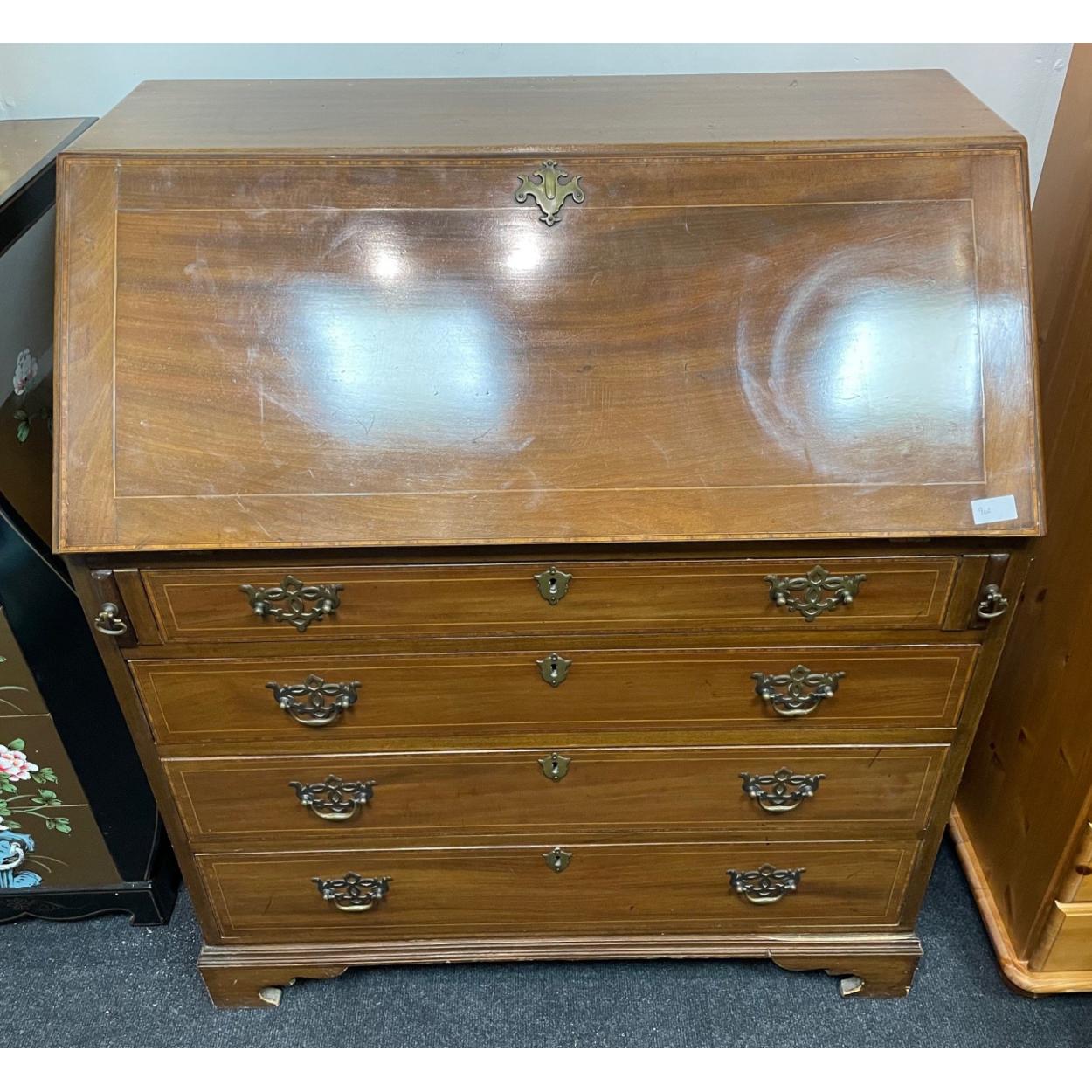 A QUALITY EDWARDIAN fitted mahogany bureau with string inlay design - dimensions 90cm long x 50cm depth